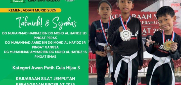 Tahniah & Syabas Di atas pencapaianDG MUHAMMAD HARRAZ BIN DG MOHD AL HAFIDZ 5DPINGAT PERAK DG MUHAMMAD AARIZ BIN DG MOHD AL HAFIDZ 3RPINGAT GANGSA DG MUHAMMAD AMMAR BIN DG MOHD AL HAFIDZ 1SPINGAT...