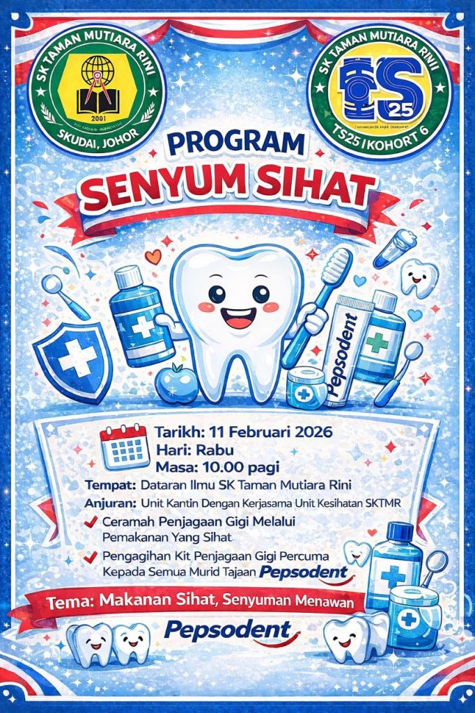 SKUDAI, 11 FEBRUARI β Dalam usaha memupuk kesedaran tentang kepentingan penjagaan kebersihan diri dan amalan pemakanan sihat sejak bangku sekolah, Unit Kantin dengan kerjasama Unit Kesihatan SK Taman Mutiara Rini (SKTMR) telah berjaya menganjurkan Program Senyum Sihat hari ini. Program yang penuh dengan aktiviti pendidikan santai ini telah diadakan di Dataran Ilmu bermula jam 10:00 pagi.