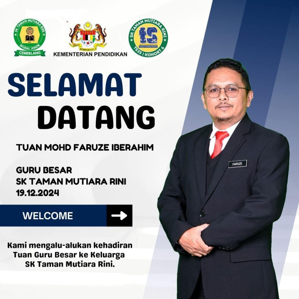 Warga SK Taman Mutiara Rini mengalu-alukan kehadiran Tuan Mohd Faruze Bin Iberahim, Guru Besar baharu di SK Taman Mutiara Rini.