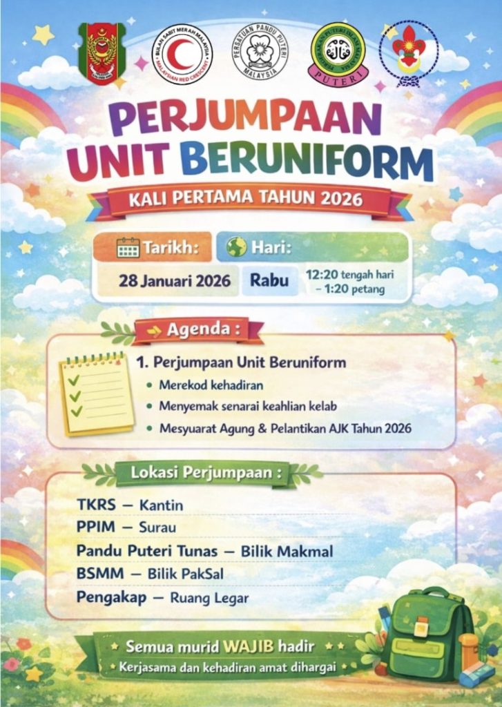 - Pelantikan AJK 2026: Proses pemilihan barisan jawatankuasa murid yang bakal menjadi penggerak utama aktiviti kawad kaki, perkhemahan, dan kemahiran teknikal.